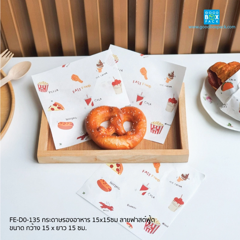 กระดาษรองอาหาร 15×15ซม. ลายฟาสต์ฟู้ด
