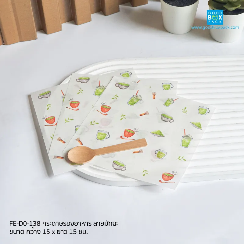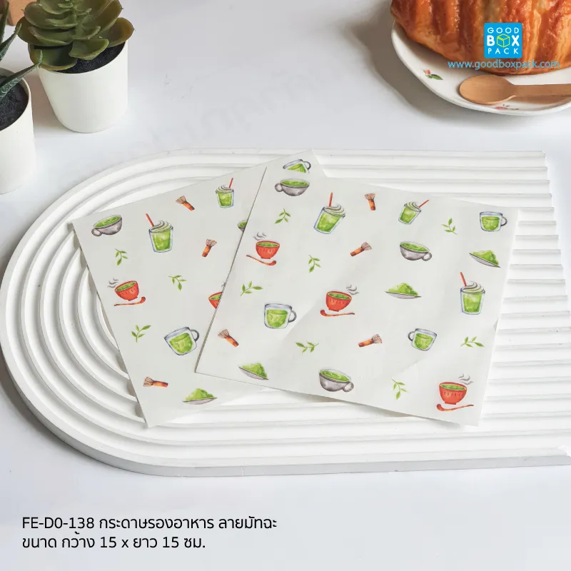 กระดาษรองอาหาร 15×15ซม.ลายมัทฉะ