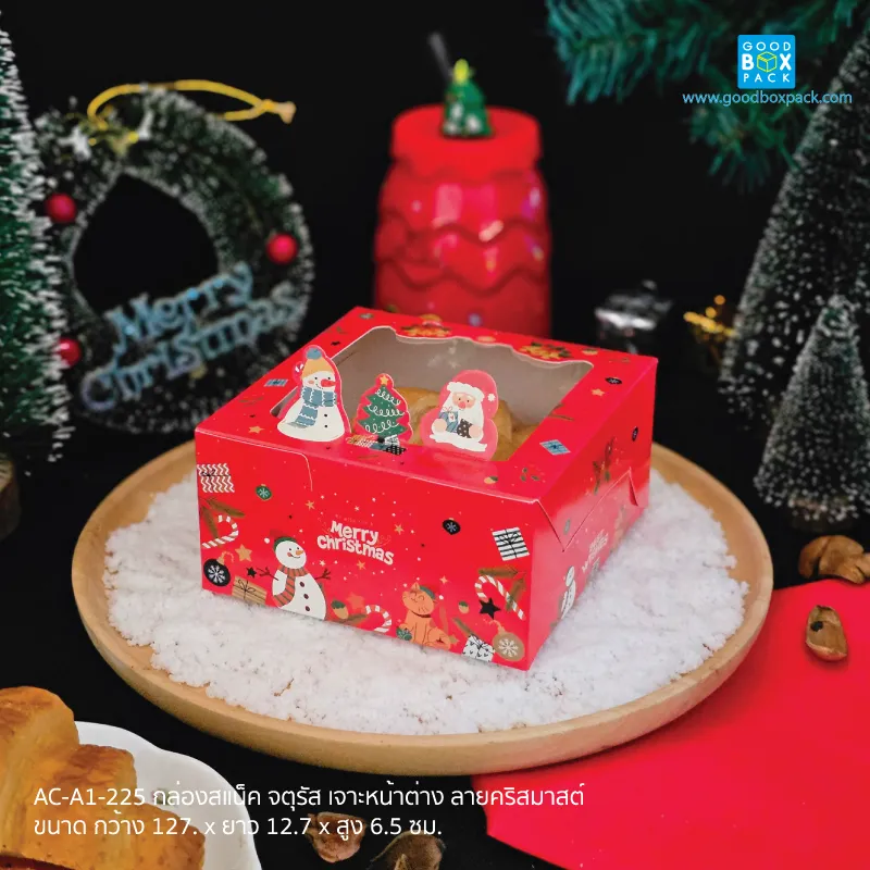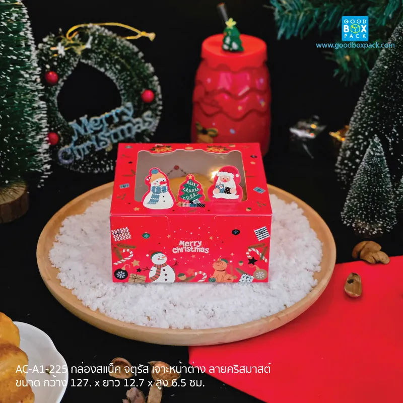 ชื่อสินค้า : กล่องสแน็ค จตุรัส เจาะหน้าต่าง ลายคริสมาสต์