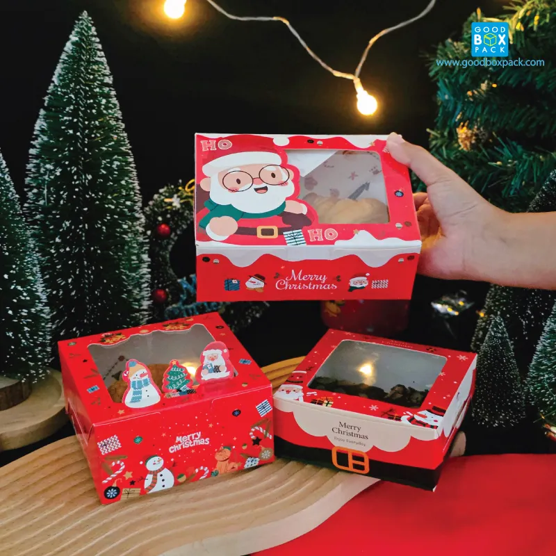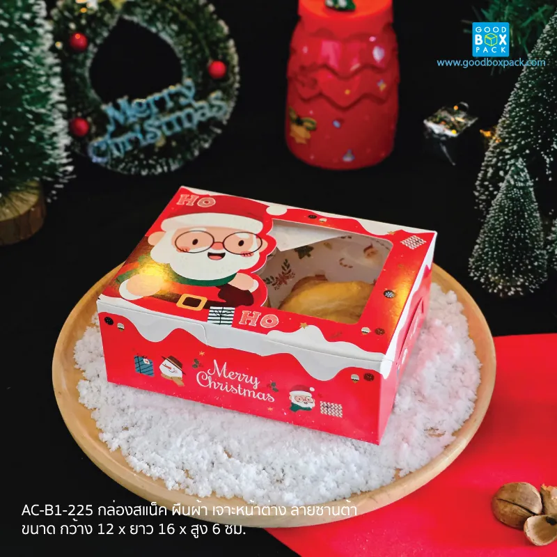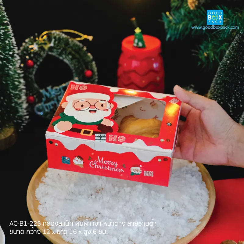 กล่องสแน็ค ผืนผ้าเจาะหน้าต่าง ลายซานต้า