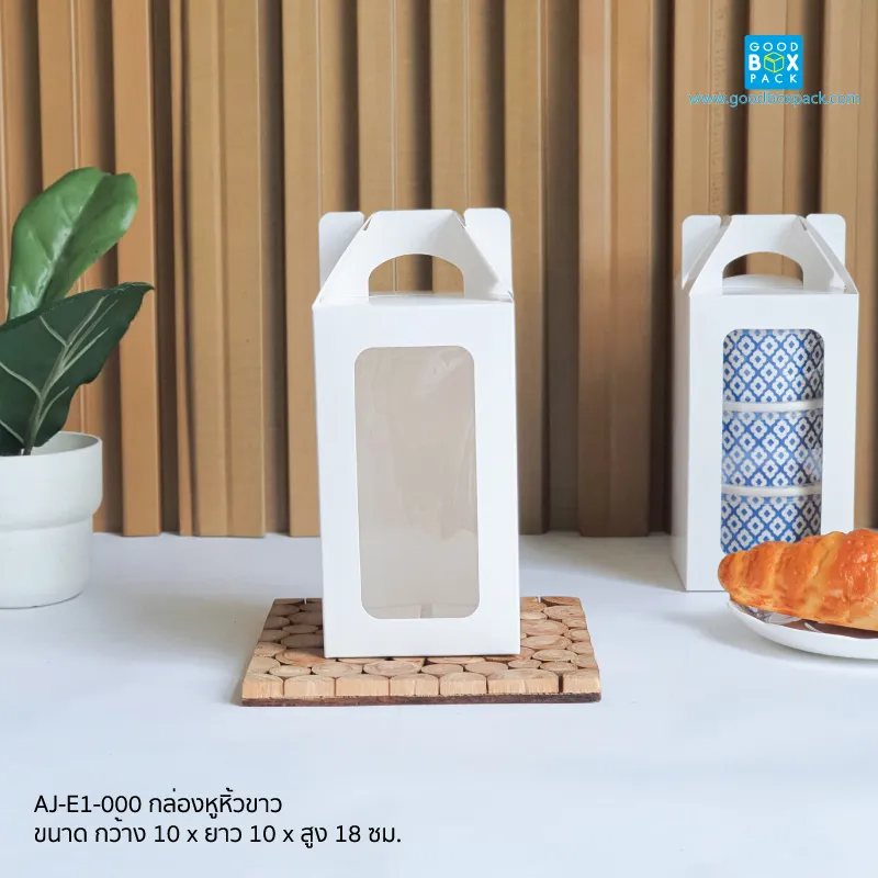 ชื่อสินค้า : กล่องหูหิ้วขาว 10x10x18cm