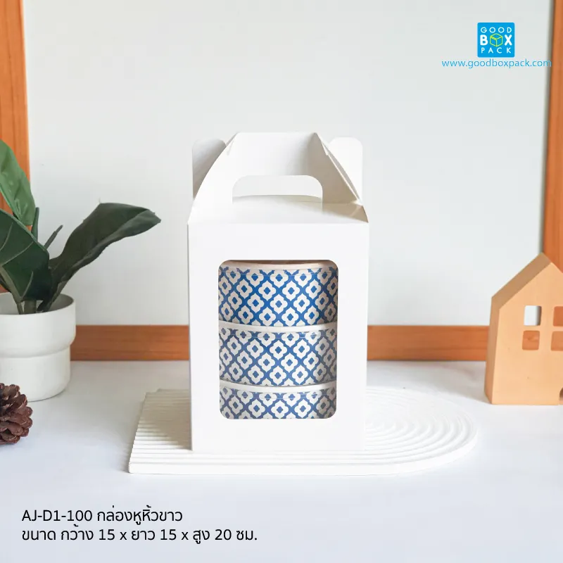 ชื่อสินค้า : กล่องหูหิ้วขาว 15x15x20 cm