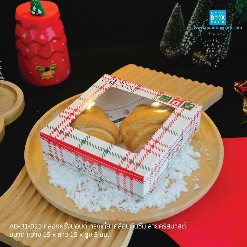Homeสินค้าใหม่ (ซื้อ10แถม1)กล่องครึ่งปอนด์ ทรงเตี้ย เคลือบกันซึม ลายคริสมาสต์