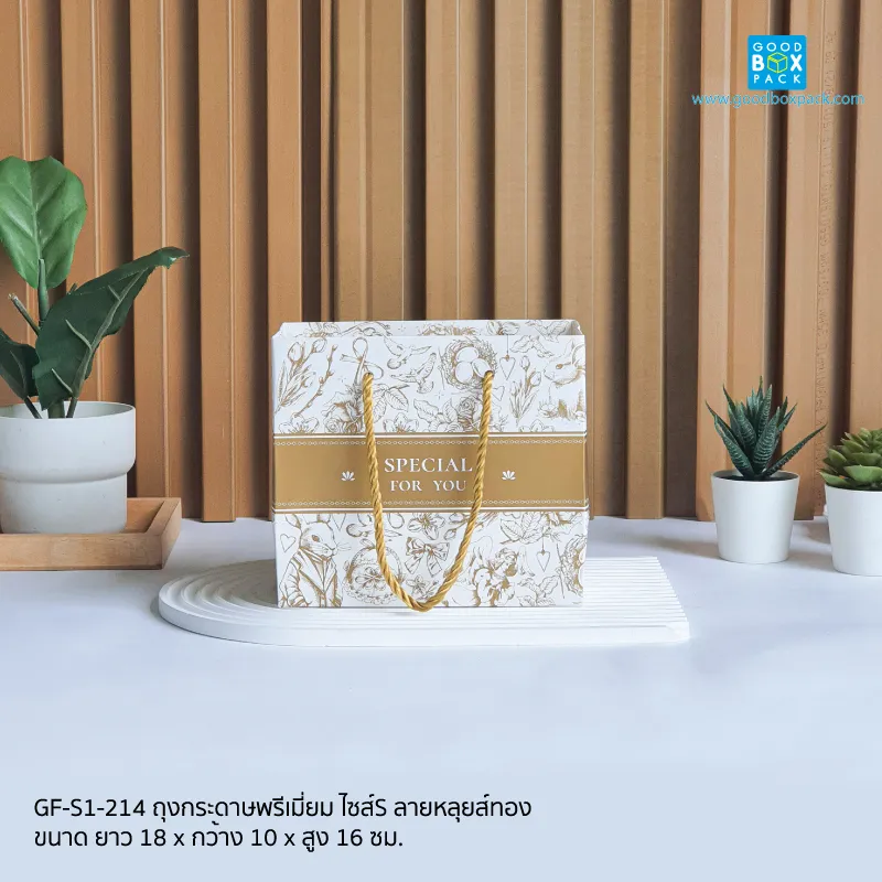 ชื่อสินค้า : ถุงกระดาษพรีเมี่ยม ไซส์S ลายหลุยส์ทอง