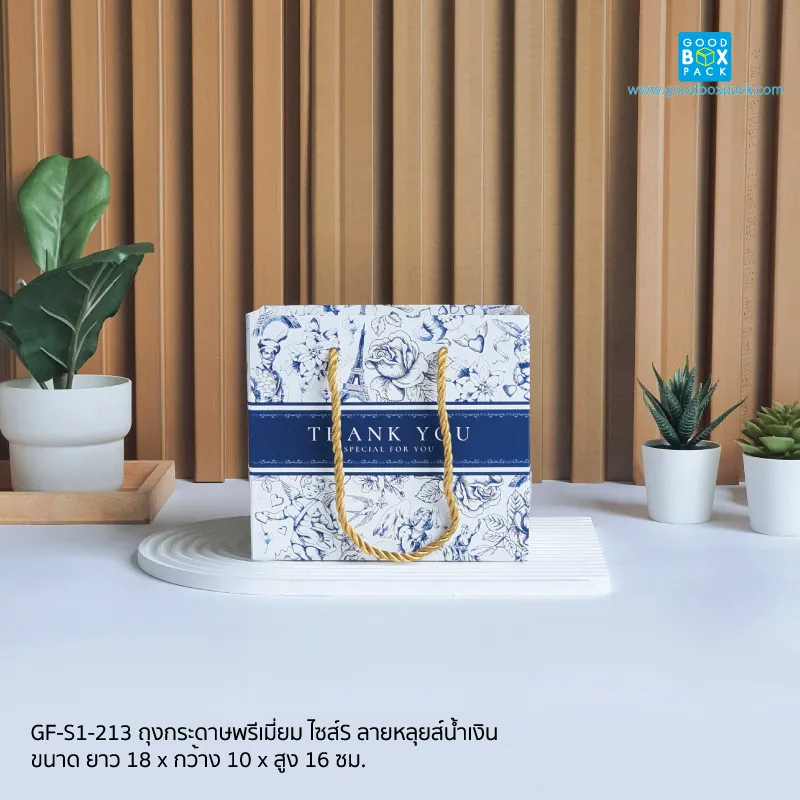 ถุงกระดาษพรีเมี่ยม ไซส์S ลายหลุยส์น้ำเงิน