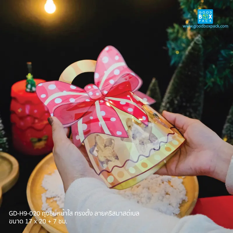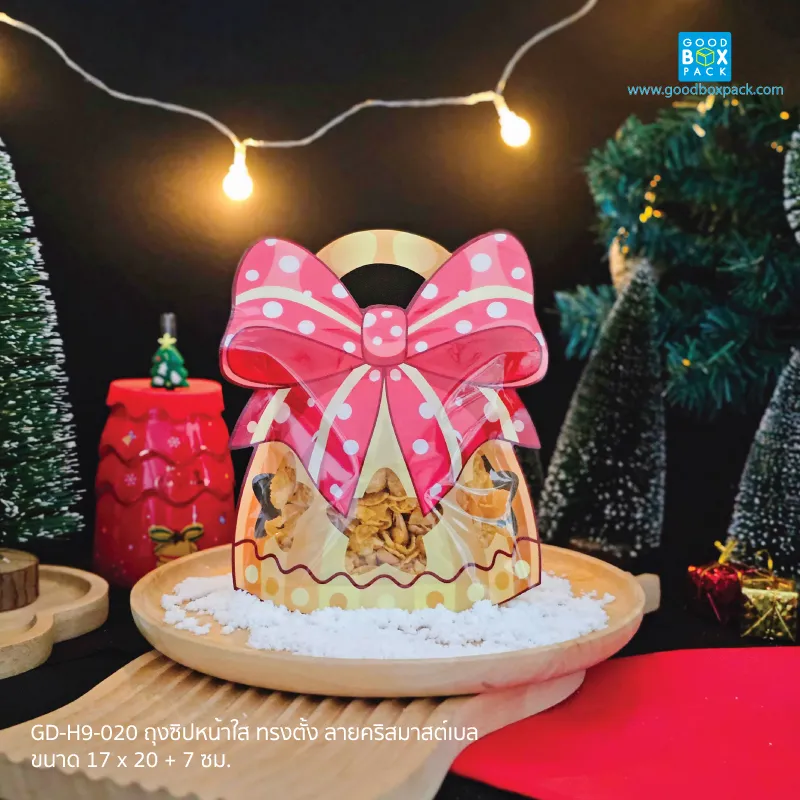 • ถุงซิปหน้าใส ทรงตั้ง ลายคริสมาสต์เบล