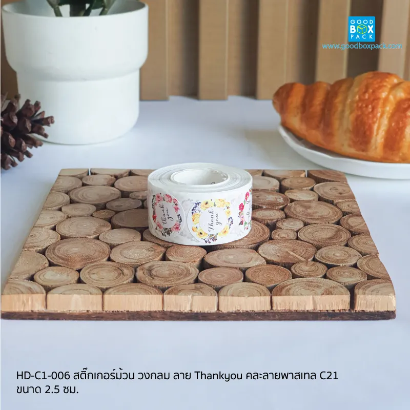 สติ๊กเกอร์ม้วน วงกลม ลาย Thankyou มินิมอลHD-C1-003