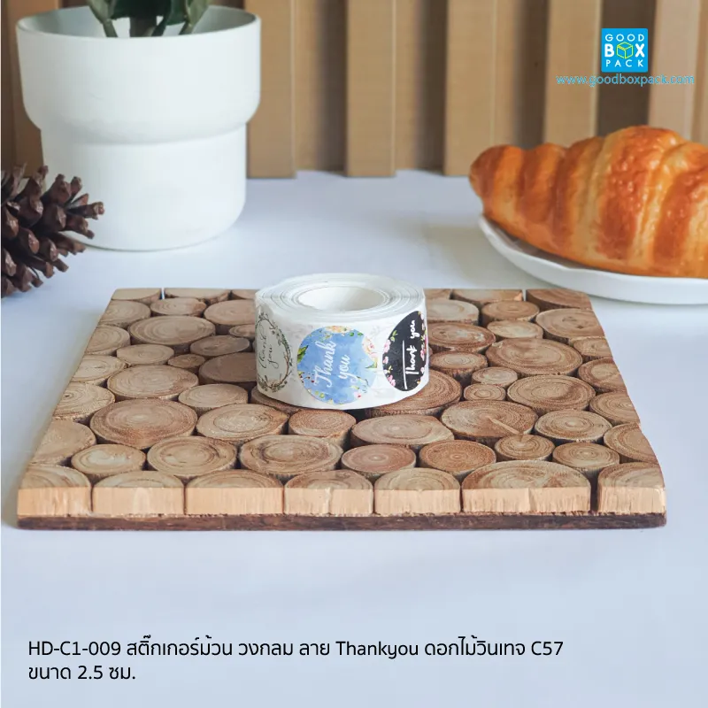 สติ๊กเกอร์ม้วน ลาย Thankyou ดอกไม้วินเทจ C57