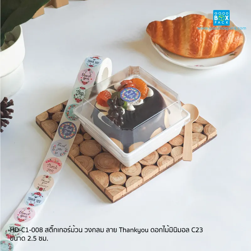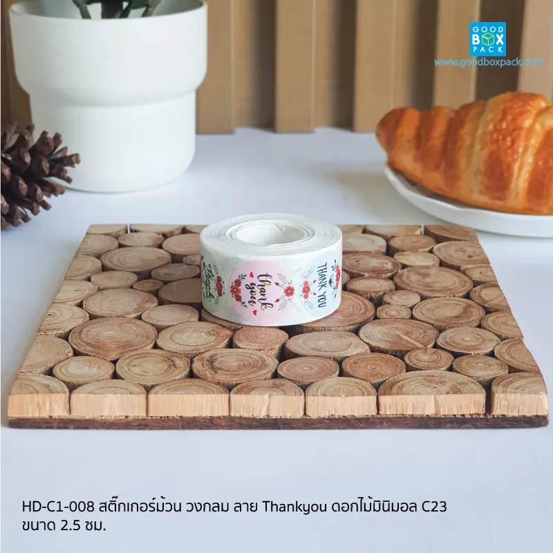 สติ๊กเกอร์ม้วน วงกลม ลาย Thankyou ดอกไม้มินิมอล C23