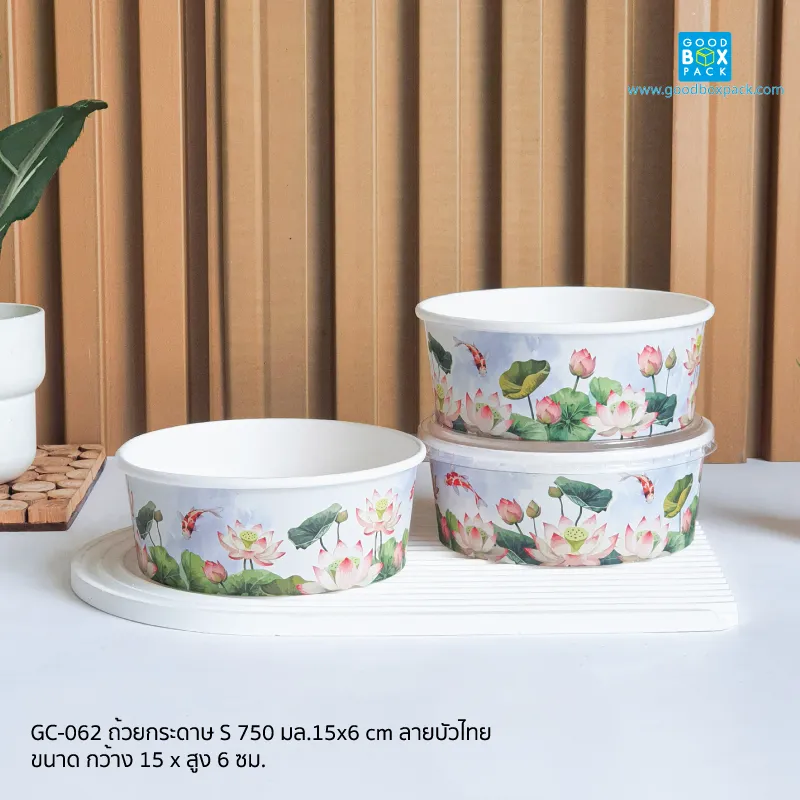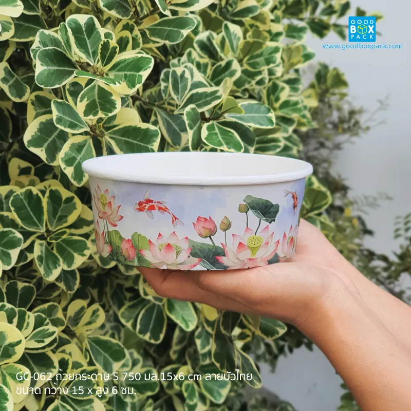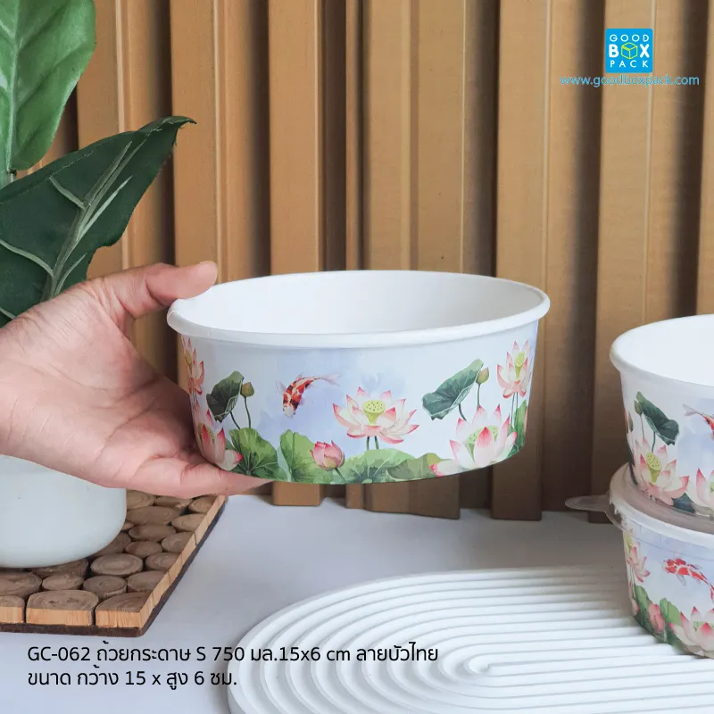 GC-062(เฉพาะถ้วย) ถ้วยกระดาษไซส์S 750 มล. ลายบัวไทย
