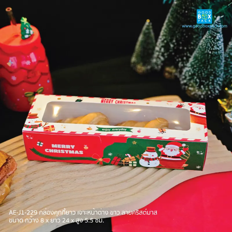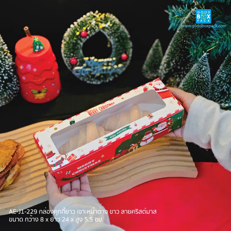 กล่องคุกกี้ยาว เจาะหน้าต่าง ลายคริสมาสต์