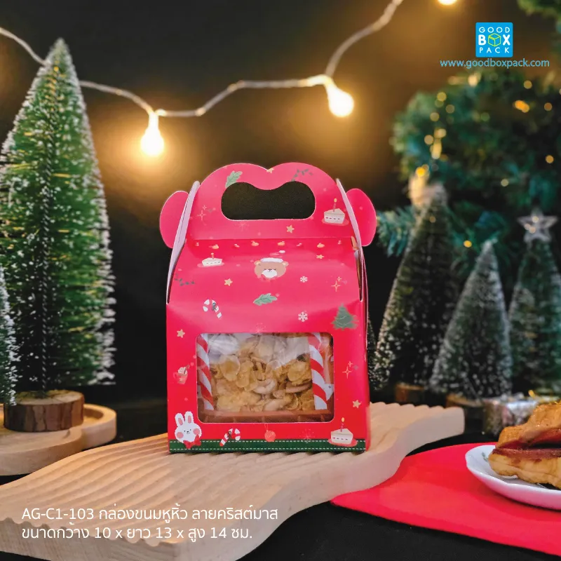 • กล่องขนมหูหิ้ว พิมพ์ลายคริสมาสต์